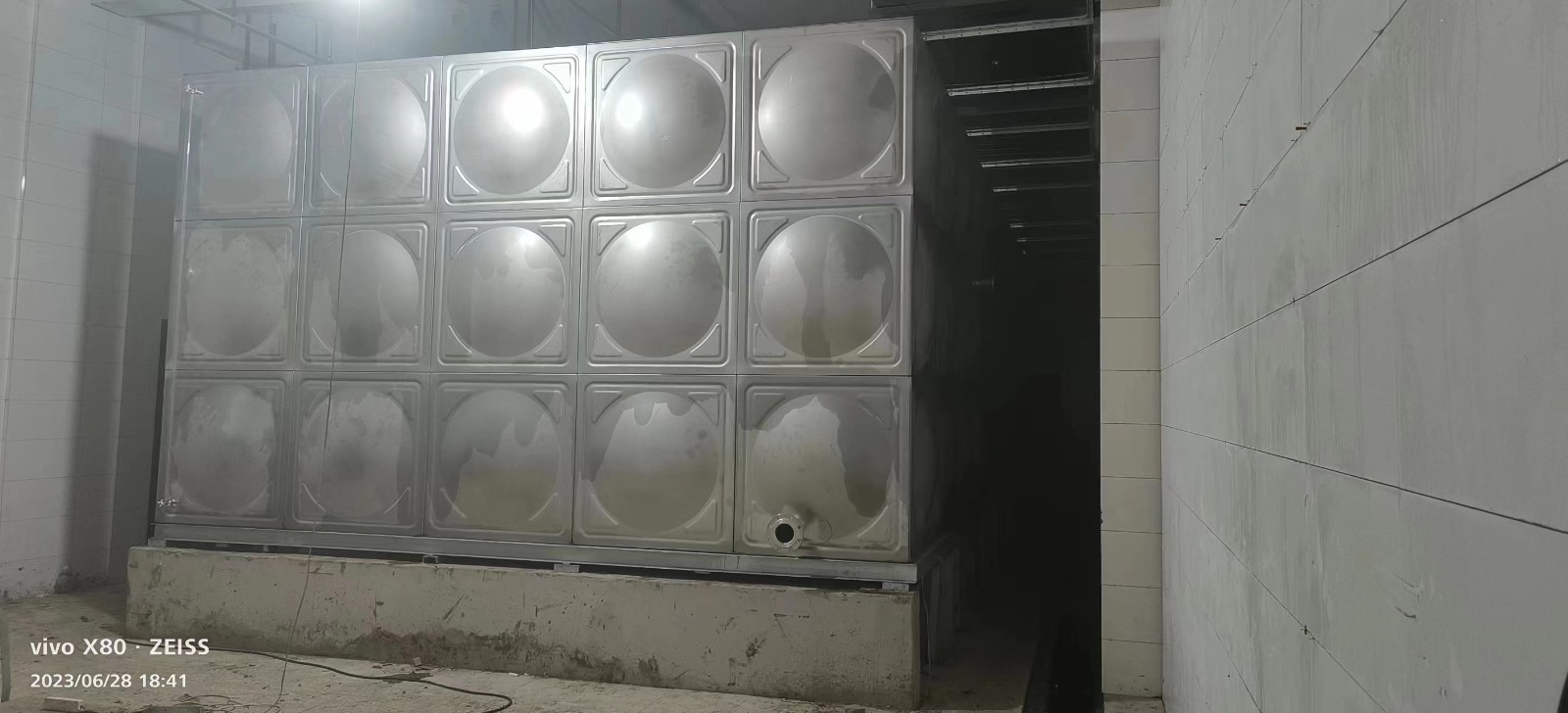 我公司承接河北省三河市燕郊生態園150立方不銹鋼水箱安裝試水完畢,此水箱用做生活儲水使用。不銹鋼水箱是繼玻璃鋼水箱之后新一代水箱產品,其產品采用SUS304不銹鋼板精工模壓而成,造型美觀、經濟實用、主體經久不壞。不銹鋼水箱與其它水箱相比,具有外形美觀、重量輕、強度高、耐腐蝕、耐高溫、水質清潔,防滲,抗震,永不生青苔,水質無二次污染,安裝方便,無需維修,便于清洗等諸多優點。是生活儲水使用的不二選擇。