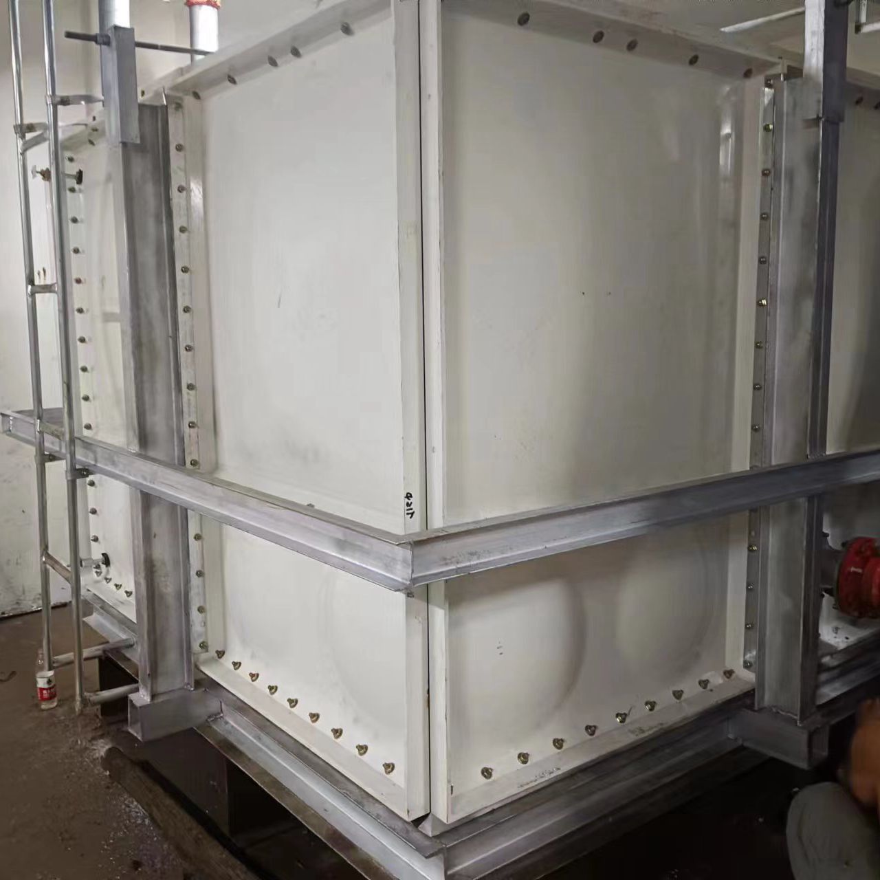由于使用環(huán)境及使用介質(zhì)所限,有些水箱內(nèi)部盛有高濃度溶液,如:濃鹽水、海水等,對水箱內(nèi)壁鋼板會有嚴(yán)重腐蝕,因此無法采用不銹鋼水箱或者鋼板水箱。正常玻璃鋼水箱板可以耐腐蝕,但是水箱內(nèi)部又設(shè)有鋼制拉筋支撐等,故此也不適用以上介質(zhì)使用。為了滿足特殊用戶的使用需求,經(jīng)過承重及承壓測試后,這種無內(nèi)件玻璃鋼水箱面世,它采用不同規(guī)格(1000*1000mm、1000*500mm、500*500mm)的玻璃鋼模壓板組裝,水箱內(nèi)部不設(shè)有任何鋼制配件,水箱外部及底部采用工字鋼加固,所有法蘭采用ABS材質(zhì)俗稱塑料材質(zhì),外觀整潔無變形,內(nèi)部無配件,易清洗、維護(hù)方便,延長了水箱的使用壽命,滿足特殊用戶的特殊需求。