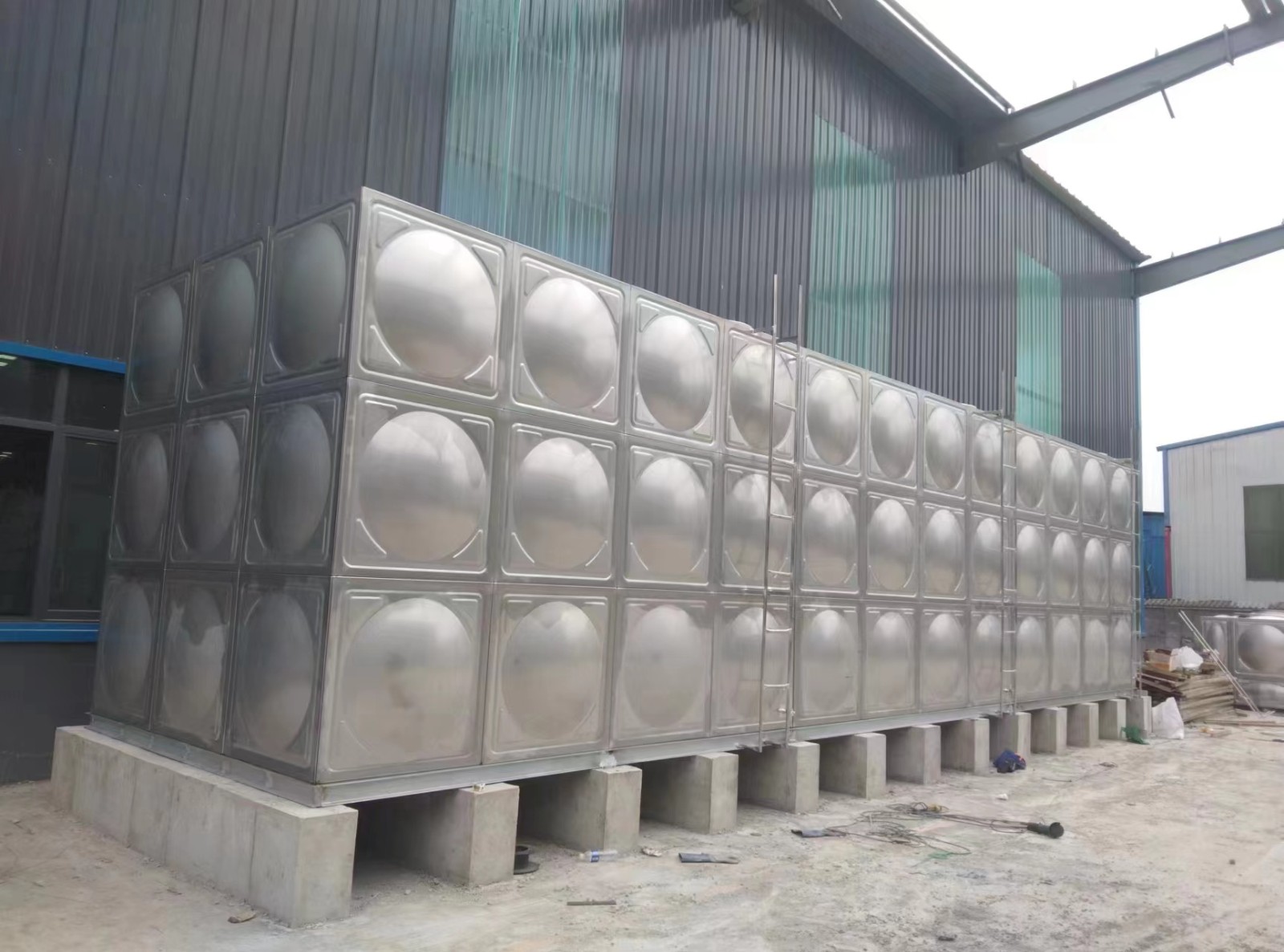 3.施工場地應井然有序,要有干燥,通風良好的工作環境。水箱條形基礎要符合圖紙及安裝要求,高度不應小于300mm,所以有基礎高度誤差不應大于 5mm: